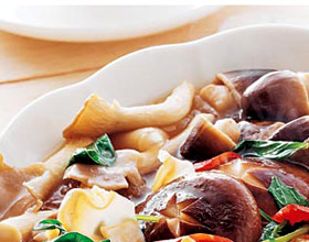 崂山十珍会:'1.核桃仁一切两半,同松子、龙眼肉、腰果一起放温油中炸酥;2.荸荠切丁,草菇一切两半,冬菇切四半,同百合、滑子菇、白果一起入沸水中氽出;3.勺中加...    详细介绍