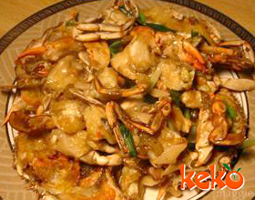 '1.使蟹肚朝上,将竹杆刺入蟹脐,螃蟹即死,然后放在冷水盆中,用竹刷把螃蟹全身用力刷洗干净,砍掉蟹脚,切去脚爪不用,蟹钳去毛一破两半,再切成二节;