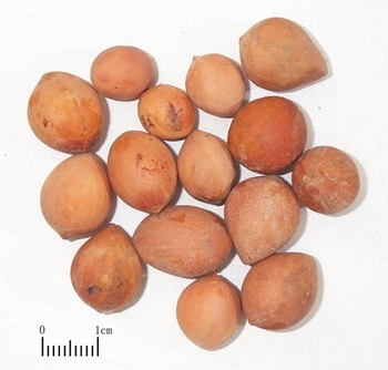 干燥的种子呈卵圆形,长2~4厘米,表面灰黄色或淡黄棕色,有纵皱纹,一端钝圆,有一椭圆形的疤痕,色较淡,在其两侧各有一个小突起,另一端稍尖,外壳质硬脆,破开后内面红棕色,有麻纹。种仁卵圆形,皱而坚实,表面有灰棕色皱缩的薄膜,仁黄白色,有油性。气微香,味微甜。以个大、壳薄、种仁黄白色、不泛油、不破碎者为佳。 主产浙江,湖北、江苏,安徽、湖南、江西、福建等地亦产。