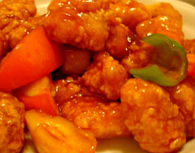 咕噜蜜肉:'1.猪肉切成3厘米*3厘米*0.5厘米的厚片,加盐2克、味精2克、鸡蛋、生粉10克,清水10克搅拌均匀,腌渍半小时后,蘸多量生粉,备用;菠萝切片;红辣椒、...