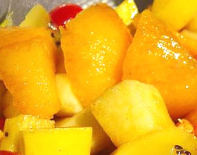 蜜汁鲜果:'1.锅添水,加入白糖烧开,熬至糖汁浓稠,盛出晾凉;2.将苹果、梨去皮、核洗净;3.菠萝去皮洗净,均切小块;4.橙子去皮掰成小瓣;5.将苹果、梨、菠萝、...    详细介绍