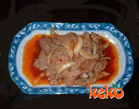 猪头肉是北京小吃中佐酒的品种,它用猪头劈开洗净,用红烧的烹调方法煮熟后,用烟熏。卖猪头肉的业主一般在下午将煮熏好的猪头肉,放在用红油漆漆得外表光亮的柜内,在夕阳时走街串巷,嘴里吆喝着“熏鱼”,老北京一听就知道是卖猪头肉的来了。