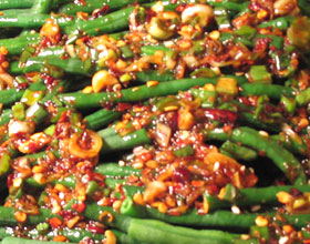 鱼香豇豆:'1.泡辣椒去籽、去蒂,剁成细末;2.姜去皮,切成粒;3.蒜去皮切成粒;4.葱洗净,切成葱花;5.碗中放入精盐、白糖、味精、酱油、醋调匀,调味,再加入泡...    详细介绍