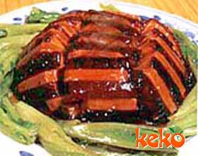 荔浦扣肉:'1.将荔浦芋头切成长方形的片,用滚油炸透;2.大蒜切蓉;3.干淀粉放碗内加适量水调制成湿淀粉备用;4.将猪肉烧去毛,刮洗干净,放在汤锅里,浸至七成熟...