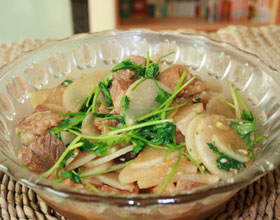 '先将牛腩洗干净切为块,再将萝卜皮、苗去掉,洗净切为斧头块,一起放在瓦煲里,加入生姜、小块陈皮,注入开水2500毫升,加盖盖着煲至滚,转用中火煲至稔,捞起盛在碟中,将汤用精盐、浅色酱油调味,用汤窝盛着,与牛腩等一起上席便成。