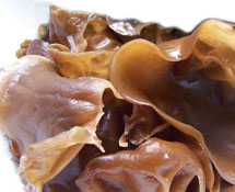 黑木耳状如耳朵,系寄生于枯木上的一种菌类,富含铁、钙、磷和维生素B1等。木耳是木耳科真菌木耳。 黑木耳在我国分布较广,北起黑龙江、南至海南岛;西至甘肃,东到福建及台湾。其中湖北、湖南、四川、贵州为主要产区,湖北产量约占全国总产量的70%。新鲜的木耳呈胶质片状,半透明,侧生在树木上,耳片直径5~10厘米,有弹性,腹面平滑下凹,边缘略上卷,背面凸起,并有极细的绒毛,呈黑褐色或茶褐色。干燥后收缩为角质状,硬而脆性,背面暗灰色或灰白色;入水后膨胀,可恢复原状,柔软而半透明,表面附有滑润的粘液。质地柔软,味道鲜美,营养丰富,可素可荤,不但为菜肴大添风采,而且能养血驻颜,祛病延年。现代营养学家盛赞黑木耳为“素中之荤”,其营养价值可与动物性食物相媲美。