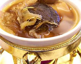 主料: 鱼翅(干}150克 鲍鱼500克 野鸡600克 鸡1200克