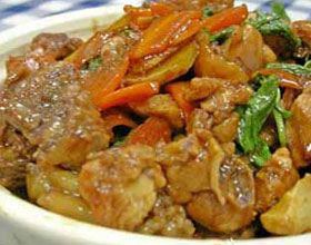 11.最好用南丰产泥炉,放入木炭点燃,将盛鸡的砂锅置其上,以文火焖制;