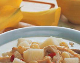 猪胰脏煲淮山汤:'1.猪胰脏、瘦肉放入滚水中,捞起洗净。2.莲子去莲心,洗净。3.山药洗净。4.姜洗净,切片。5.薏米用清水浸片刻,放滚水中煮5分钟,捞起用冷水冲洗。6....    详细介绍