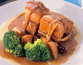 大伯红烧肉:'1.五花肉、蹄膀肉刮洗干净,切成直径3厘米的块放入开水中冒出;2.葱切长段,姜一拍;3.金针菇切3厘米长段,草菇一切两半,水发木耳切块,同滑子菇一起...    详细介绍